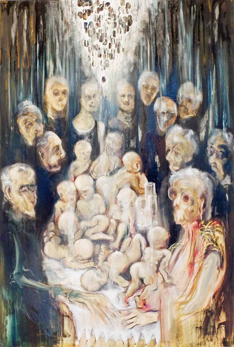 Technik : Öl, Lack, Phosphor, Pigment, Dia auf Leinwand